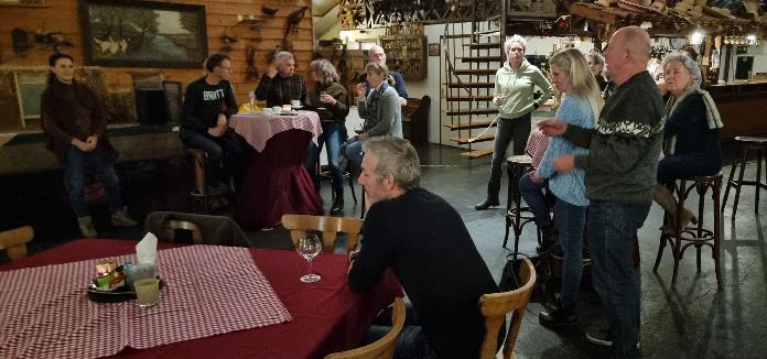 De avond werd namens NWB geopend door Caroline Thijs, een van de oprichters en initiatiefnemers van de Coöperatie NWB, met een hartelijk welkom. Vervolgens was het woord aan Pieter Jan van Dijck, mede-eigenaar van de Menmoerhoeve, die uitgebreid vertelde wat bezoekers kunnen verwachten bij een bezoek. Dat zijn naast het restaurant en de camping georganiseerde belevenissen, zoals Boerengolf, Zeskamp, SpeltinHooiberg, Huifkartocht, team coaching met paarden en nog veel meer. Maar ook maatschappelijke ondersteuning wordt geboden in de vorm van een erkend leerbedrijf. Op tafel stonden lekkere borrelhapjes en lichte alcoholische drankjes werden gereserveerd aan de bar.