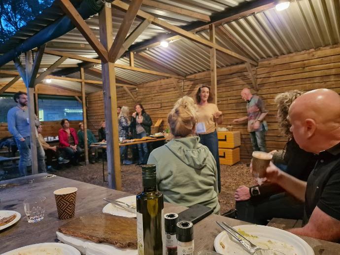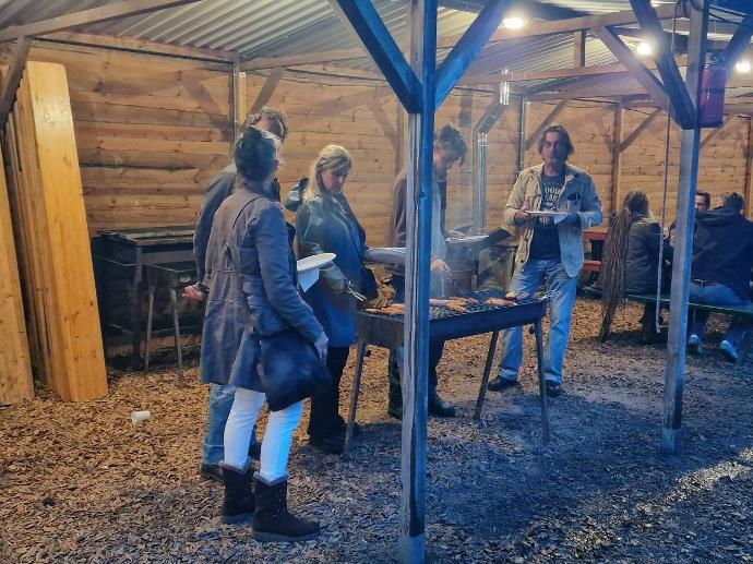 Er stond bij aankomst een voortreffelijke maaltijd gereed met een barbeucue en drankjes. Vlees, soep, stokbrood, salades, maar ook voor de vegetariërs was gezorgd.