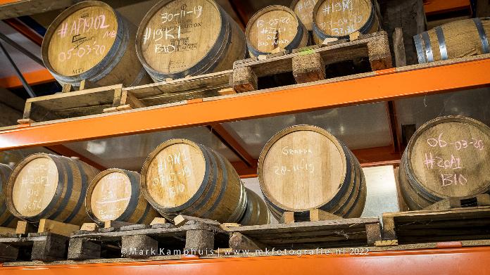 Een glaasje gif? Niet bij Dassemus. De oranje wijn bijvoorbeeld wordt gemaakt van witte druiven maar met schilweking zoals bij een rode wijn en behoeft daardoor ook geen sulfiet. "Het is een hele oude manier van wijn maken. Een paar honderd jaar geleden kon witte wijn niet bestaan. Zonder sulfiet zou het bederven. Maar als je de schillen mee gist, geven die tannine af, een natuurlijk conserveermiddel. Het is heel fruitig, maar superdroog op de tong. Een combinatie van frisheid, floraal en structuur. Proost!" Glazen gaan naar de mond. De reacties zijn gemengd. Langeveld verdedigt zich: "Het is wel even wennen, maar heel populair." Met een knipoog: "In Amsterdam."