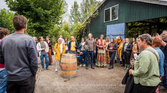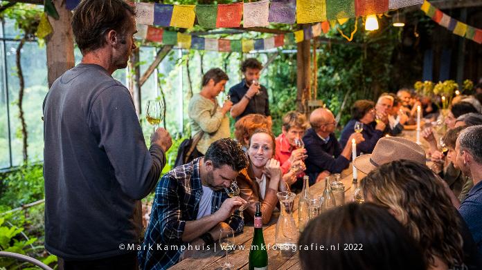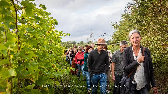 Enkele tientallen aspirant-leden van burgerinitiatief Nieuw West-Brabant zijn deze vrijdag 9 september afgekomen op de rondleiding en proeverij. Langeveld neemt ze mee door de biologisch-dynamische wijngaard. Het is keihard werken. Met aanvankelijk weinig resultaat. Het kostte Langeveld 14 jaar om 'break-even' te draaien, omdat een wijnstok traag groeit en veel soorten tijdens de experimentele fase het loodje legden en moesten worden vervangen door nieuwe rassen. Zijn partner Monique was de kostwinner.