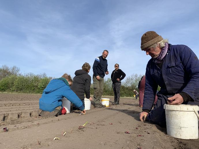 Frans en zijn vrouw Maria combineren al ruim twee decennia landbouw met zorg, op dit moment met mensen met een verslavingsverleden: “Ik rookte de hele dag jointjes”, zegt Roy (40) nadat hij een rij uitjes in de grond heeft geduwd. “Ik was tegen het depressieve aan en lag tot laat op de dag op bed.” Nu is Roy naar eigen zeggen ‘gewoon heel gelukkig’. Roy: “Vorige week ging Frans aardappelen poten. Ik zag het om 08.00 uur ‘s ochtends. ‘Frans!’, riep ik, en ik trok mijn overall aan en ging mee aan de slag.”