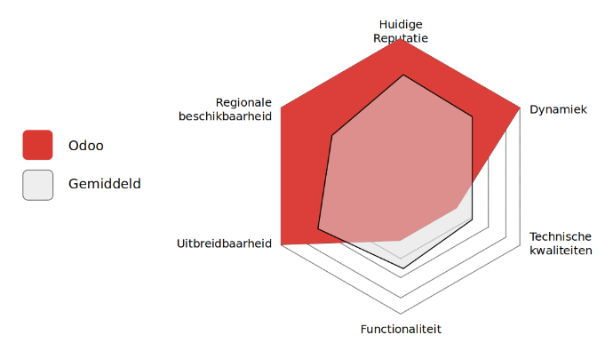 Zo heeft de bedrijfssoftware Odoo een opensourceversie, mede ondersteund door de Odoo Community Association (OCA). Hiervoor zag je een voorstelling van hoe deze oplossing op onze zes criteria scoorde. Het bedrijf achter Odoo hanteert een open-coremodel en biedt ook een Enterprise-versie aan. We dienen elke paar jaar te herevalueren of de community rond de opensource Odoo-versie nog dynamisch genoeg is om de meest geschikte keuze voor bedrijfssoftware te zijn.